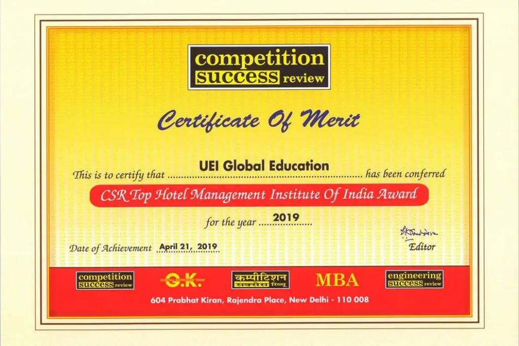 UEI Global Education, one of the leading hotel management institutes in India, is committed to supporting talented students who aspire to build successful careers in the hospitality industry. To encourage deserving students and make quality education more accessible, UEI Global offers the Merit Based Scholarship Programme. Through this initiative, UEI Global ensures that talent, passion, and dedication—not financial limitations—become the driving force behind a student’s professional journey.