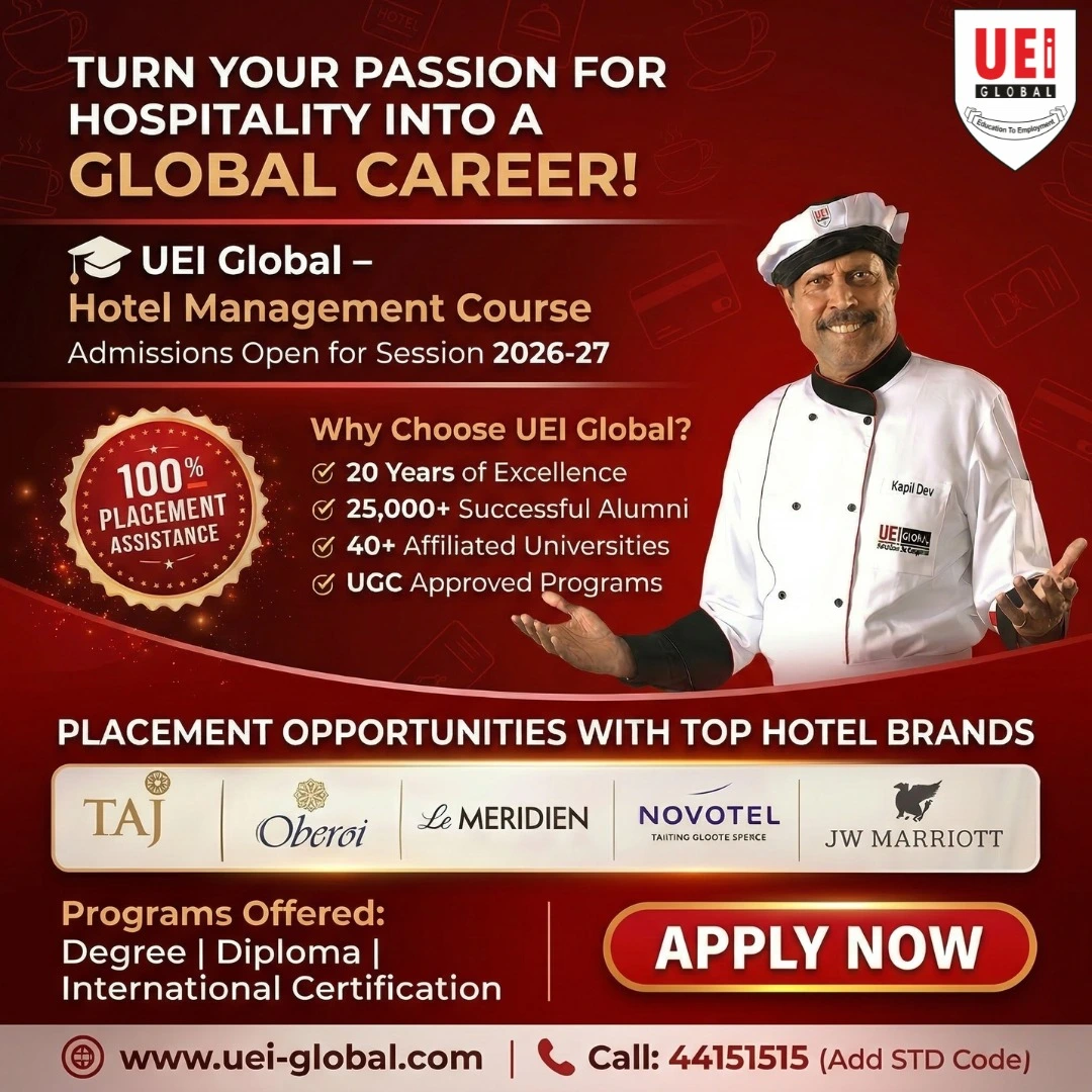If you are searching for a hotel management course in Chandigarh, UEI Global Education offers comprehensive programmes designed to meet industry standards.